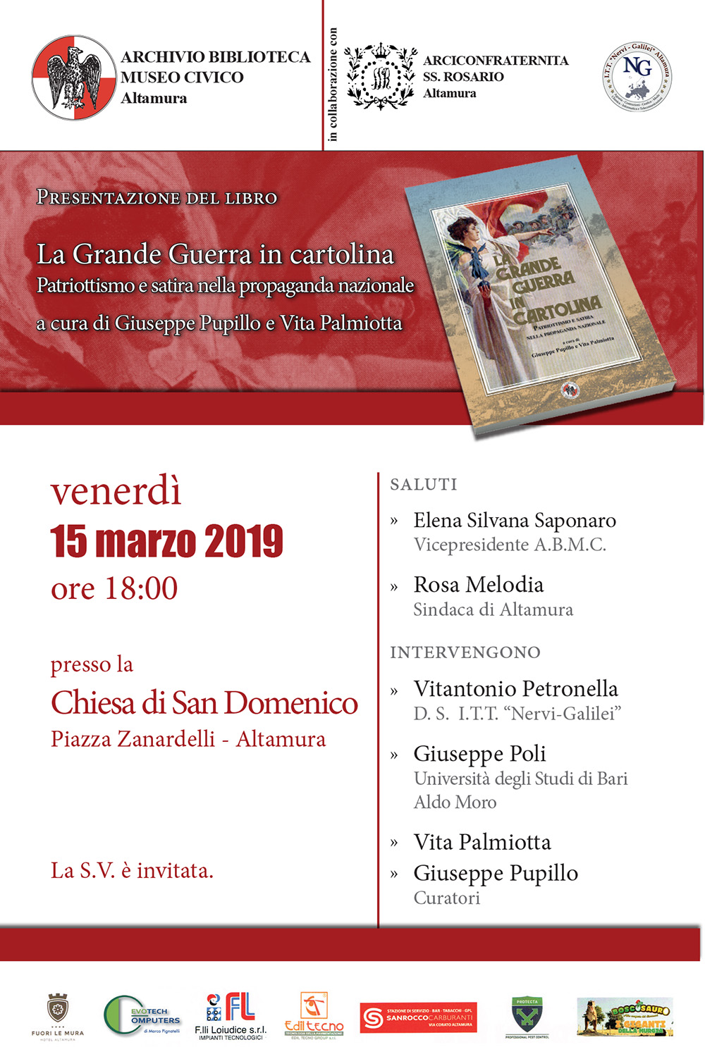 Vnerdì 15 Marzo 2019 alle ore 16.00 presso la Chiesa di San Domenico, presentazione libro LA GRANDE GUERRA IN CARTOLINA