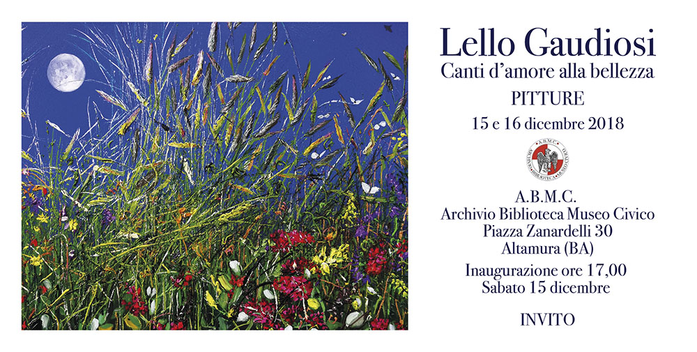 Alle ore 17.00 presso la sede centrale in Piazza Zanardelli 30, inaugurazione della mostra di pittura di Lello Gaudiosi, Canti d'amore alla bellezza (rimarrà aperta anche domenica 16)